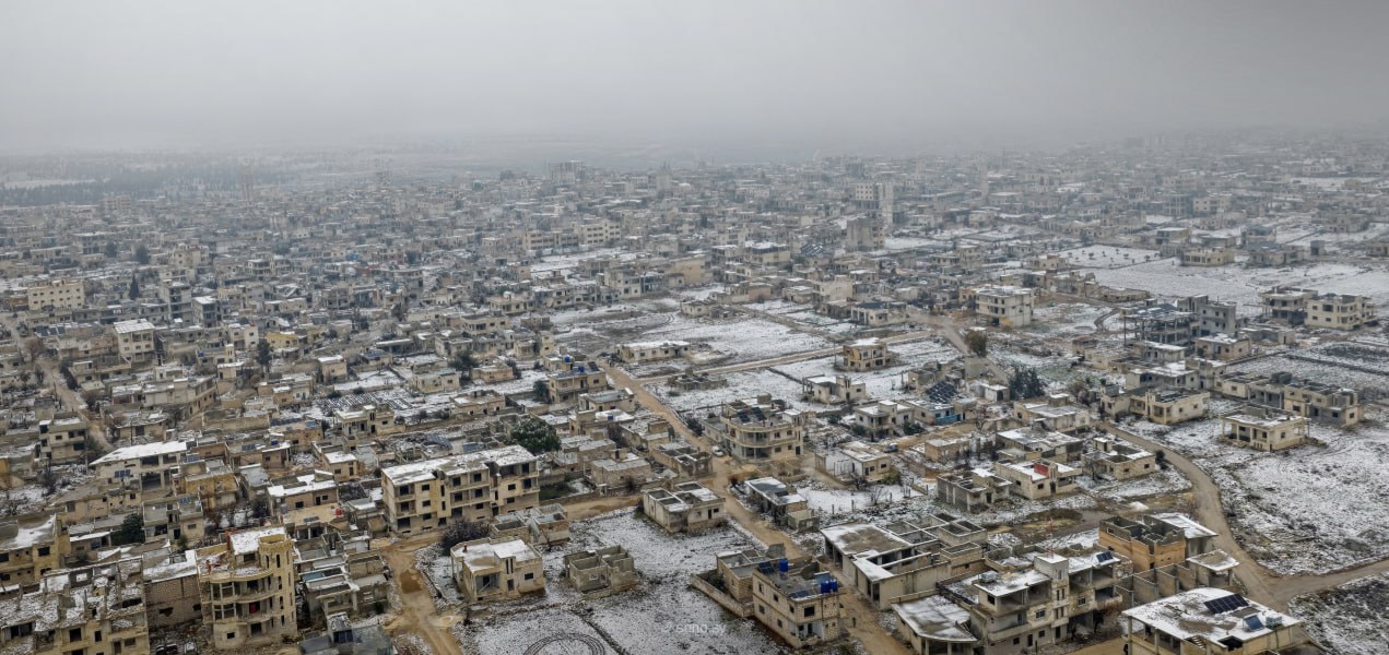 الثلوج تغطي مدينة أريحا وقرى جبل الزاوية بريف إدلب- صور