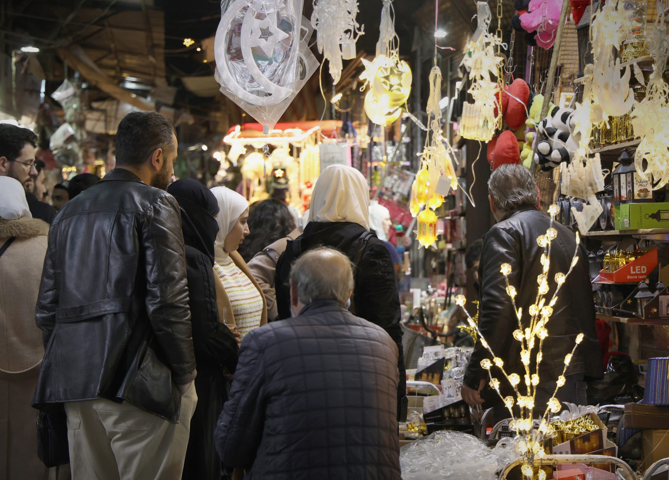 عشية دخول شهر رمضان المبارك لبيوت السوريين، تزينت أسواق دمشق بالفوانيس والزينة والأضواء، في مشهد يعكس الأجواء الرمضانية في تقليد سنوي يجسد الفرح باستقبال الشهر الفضيل.