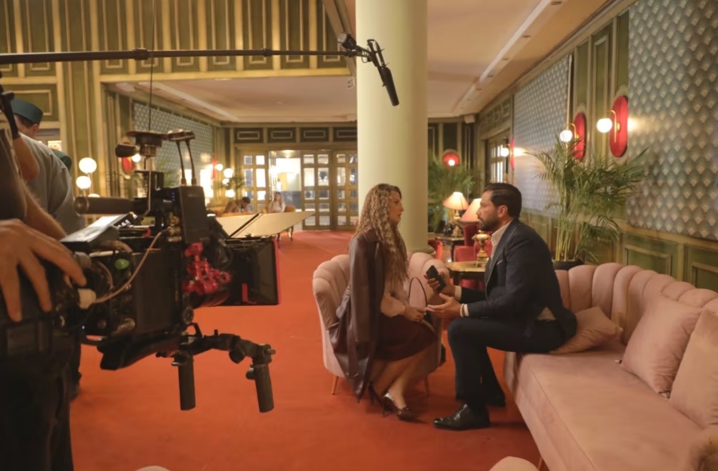 توفر نقاط البولكا إيقاعًا بصريًا على الكاميرا، والجلد الملون يضيف قوة، بينما تدعم الألوان الدافئة مثل العنبر، والوردي، والأخضر الغامق الرحلة العاطفية للشخصيات، بما يتماشى مع جو الفندق الدافئ والمليء بالحنين.