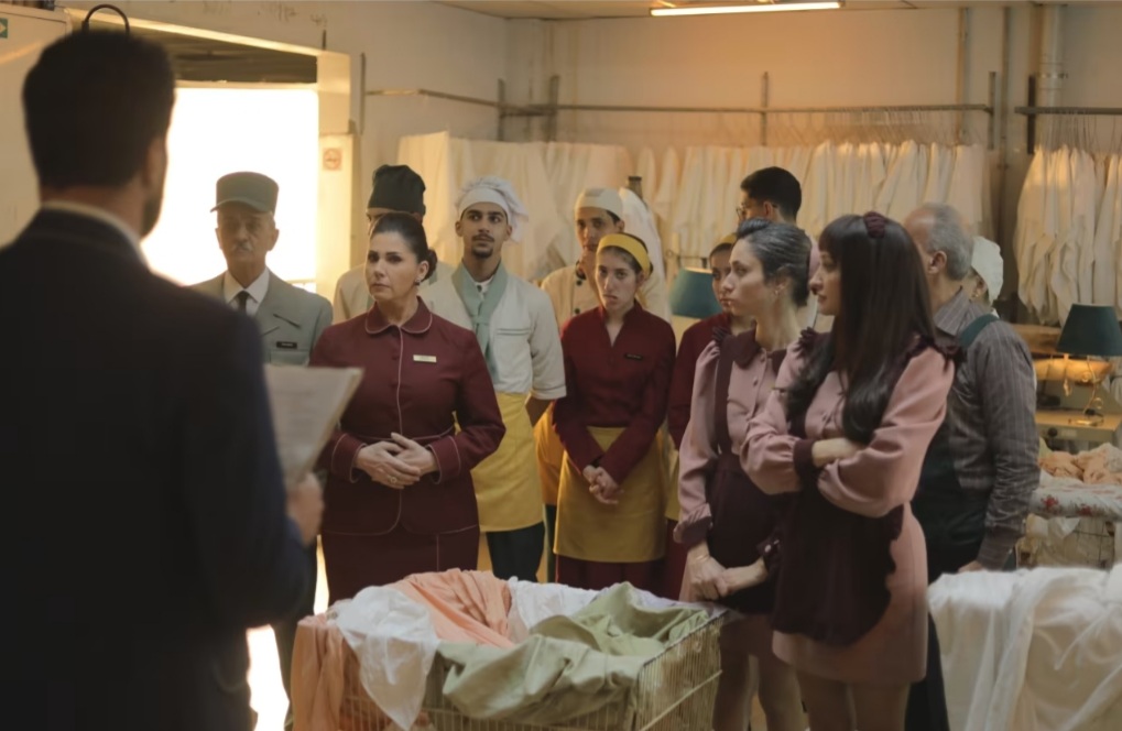 ولفتت إلى أنّ أزياء موظفات الفندق أدّت دورًا أساسيًا في بناء عالم اللوبي. فقد ارتدت الممثلتان اللبنانيتان جيسي عبدو بدور "تالا" وتريسي يونس بدور "عبير" زيًا قصيرًا أنيقًا مزج بين الطرافة والرقي، مكتملًا بالشعر، والإكسسوارات، والخطوط التصميمية التي تعكس شخصية كل منهما، وتتناسب مع مستوى الفندق من فئة خمس نجوم.