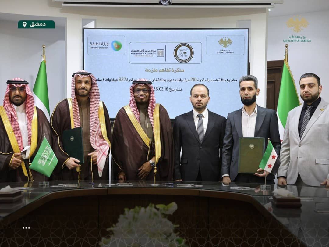 برعاية وزارتي الطاقة في الجمهورية العربية السورية والمملكة العربية السعودية، وقّعت المؤسسة العامة لنقل وتوزيع الكهرباء مذكرة تفاهم ملزمة مع شركة محمد أحمد الحرفي السعودية للمقاولات؛ لتنفيذ مشروع محطة طاقة شمسية باستطاعة 210 ميغاواط (AC)، مدعومة بنظام تخزين طاقي بالبطاريات (BESS) بسعة 827 ميغاواط/ساعة.