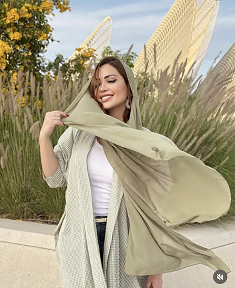 واعتمدت نسرين في إطلالتها على لوك أنيق بألوان هادئة، مع وشاح أخضر منسدل، ومكياج ناعم أبرز جمالها الطبيعي.